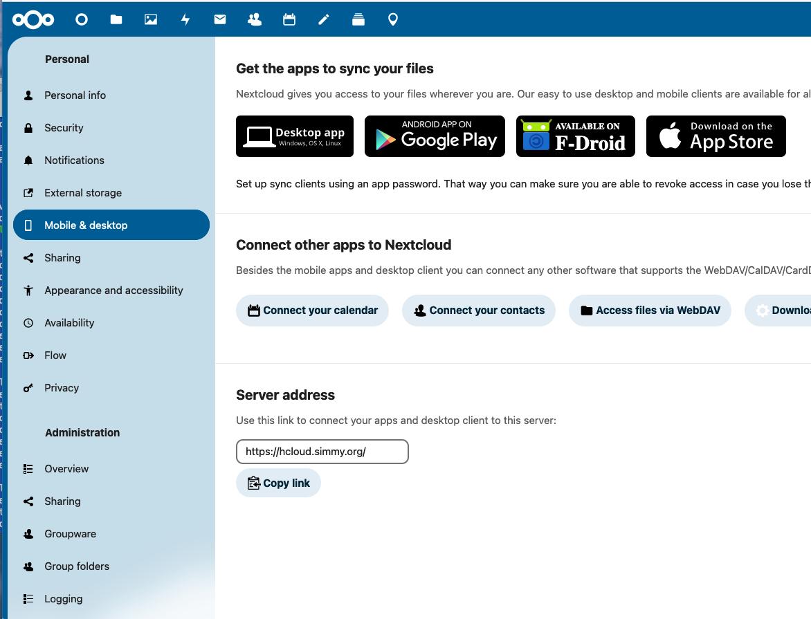 If you logon to the Nextcloud, go to your Profile and then click on Mobile & Desktop.